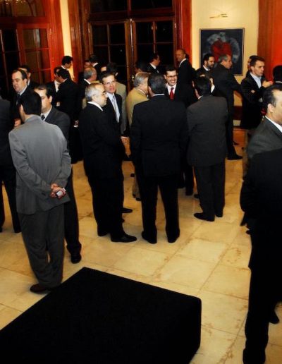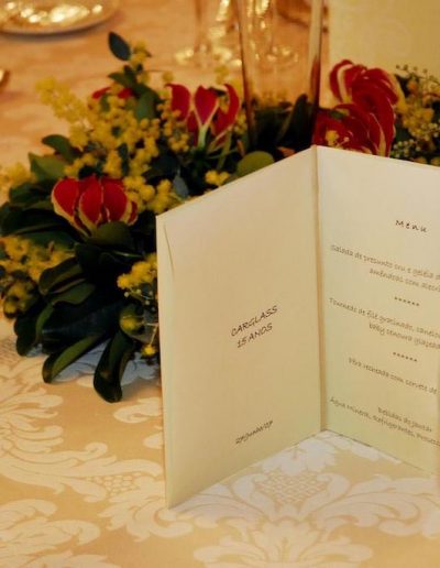 Coordenamos o cerimonial de recepção dos convidados, cenografia, decoração floral, catering, sonorização, MC, desenvolvimento de brinde comemorativo e de toda a infra de segurança, ambulância, limpeza e entretenimento durante toda a noite para os 500 convidados.