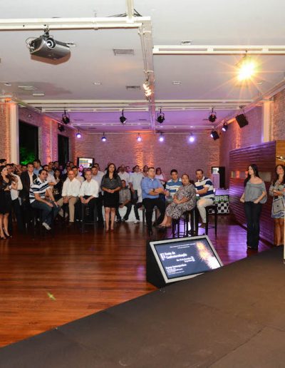 Criamos todo o conceito da festa, definimos o local (o Espaço Contemporâneo), fizemos a cenografia, cuidamos da contratação dos serviços de catering, da decoração floral, do mobiliário e infraestrutura de receptivo para os funcionários da CBRE.