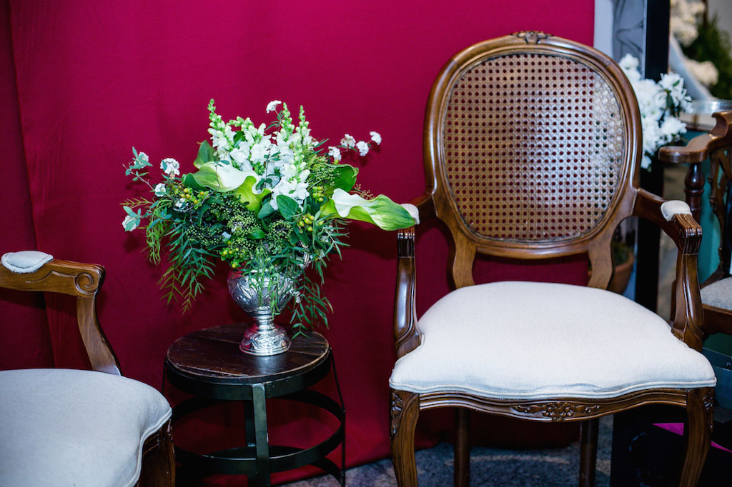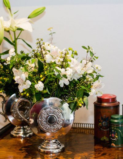 Cada convidada recebeu uma cesta com meias italianas, flores da estação, sachês de chá inglês e um kit de costura e espelho para maquiagem.