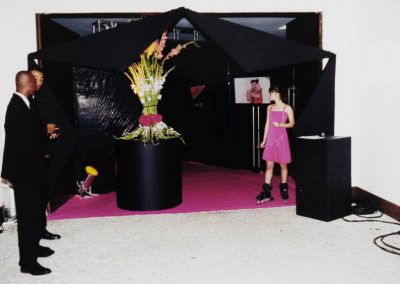 Criamos uma festa temática para o banco holandês ING. O tema era Golden Years anos 50/60/70. Construímos o cenário com elementos da época: lanchonetes, bailes com personagens, garçonetes de patins, lambretas, carros antigos etc.