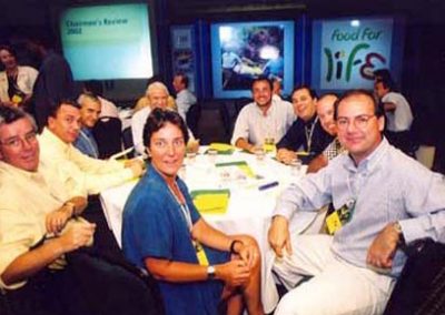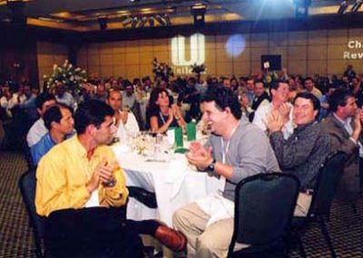 Esse foi um grande evento com uma grande logística. Desenvolvemos toda a comunicação visual inspirada na linguagem brasileira: pastas, convites, papel da convenção, crachás, banners, guardanapos etc. Tudo era nas cores do Brasil com o logotipo da empresa trabalhados em harmonia.